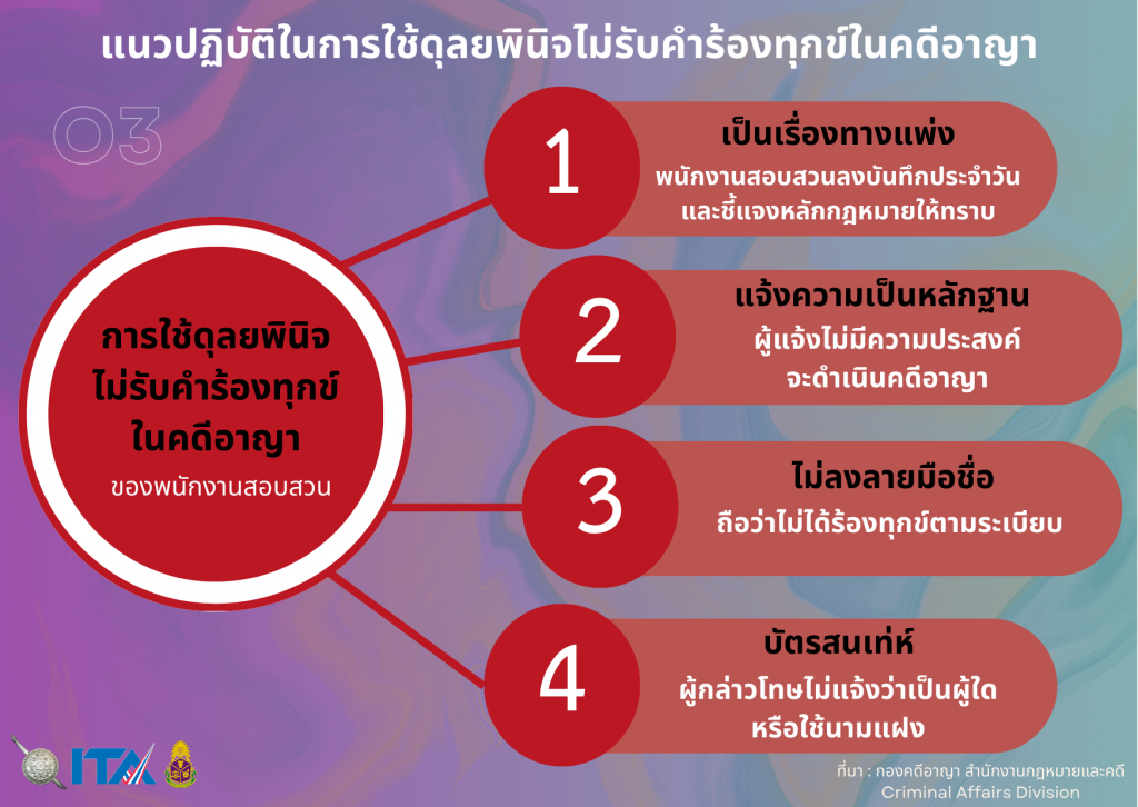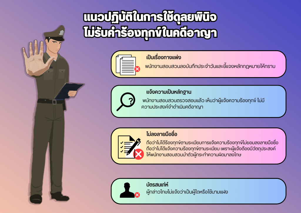 »» แนวปฏิบัติในการใช้ดุลยพินิจไม่รับคาร้องทุกข์ในคดีอาญา ««